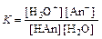 Для характеристики силы электролитов применяют также константу диссоциации (константу равновесия реакции диссоциации): HAn + H2O «H3O+ + An– Так как концентрацию воды в водных растворах можно принять за постоянную величину, ее можно включить в константу равновесия: