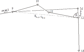 где S12-M – длина линии 12-М; a12-M – дирекционный угол линии 12-М.