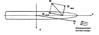 При рассмотрении движения судна используется связанная с центром тяжести судна прямоугольная система координат XYZ. Положительное направление осей: Х - в нос; Y - в сторону правого борта; Z - вниз. Все силы, действующие на судно, разделяются на три группы: движущие, внешние и реактивные. К движущим относятся силы, создаваемые средствами управления: сила тяги винта, боковая сила руля, силы,создаваемые средствами активного управления. К внешним силам относятся силы давления ветра, волнения моря, течения. К реактивным относятся силы, возникающие в результате движения судна под действием движущих и внешних сил. Они разделяются на инерционные - обусловленные инертностью судна и присоединенных масс воды и возникающие только при наличии ускорений. Направление действия инерционных сил всегда противоположно действующему ускорению. Неинерционные силы обусловлены вязкостью воды и являются гидродинамическими силами. При анализе сил, действующих на судно, оно рассматривается как вертикальное крыло симметричного профиля относительно диаметральной плоскости (ДП). Применительно к судну, основные свойства крыла формулируются следующим образом: * если судно перемещается прямолинейно в потоке воды или воздуха под некоторым углом атаки, то помимо силы лобового сопротивления, направленной противоположно движению, возникает подъемная сила, направленная перпендикулярно набегающему потоку. В результате равнодействующая этих сил не совпадает с направлением потока. Величина равнодействующей сил пропорциональна углу атаки и квадрату скорости набегающего потока;