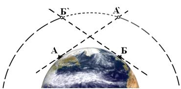 В большинстве современных радиотехнических систем искусственные спутники Земли (ИСЗ) выполняют роль носителя ретрансляционной радиостанции. Принцип использования ИСЗ для ретрансляции наиболее наглядно может быть рассмотрен на примере системы связи. На рисунке 1.2 изображена упрощенная структура системы спутниковой связи и введены следующие обозначения: А и Б - наземные пункты, между которыми устанавливается связь; прямые АА' и ББ' -касательные к поверхности Земли, в точках А и Б являются линиями горизонта этих пунктов. Из рисунка видно, что ИСЗ, движущийся по орбите, одновременно может наблюдаться в пунктах А и Б только на участке орбиты А'-Б'. При движении на этом участке электромагнитныеколебания, излучаемые антенной системой пункта А в направлении ИСЗ, принимаются бортовой радиоаппаратурой спутника, а затем после обработки и усиления направляются в сторону Земли и могут быть приняты в пункте Б.