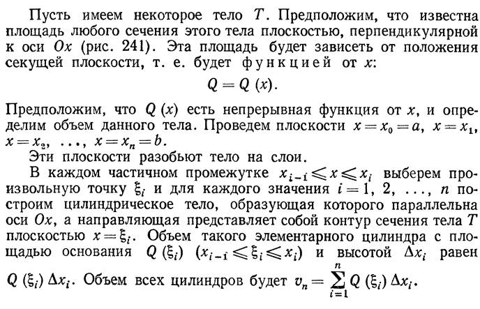 1.3. Вычисление объема тела по площадям параллельных сечений