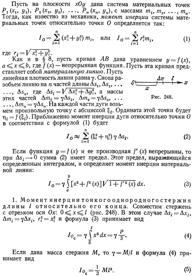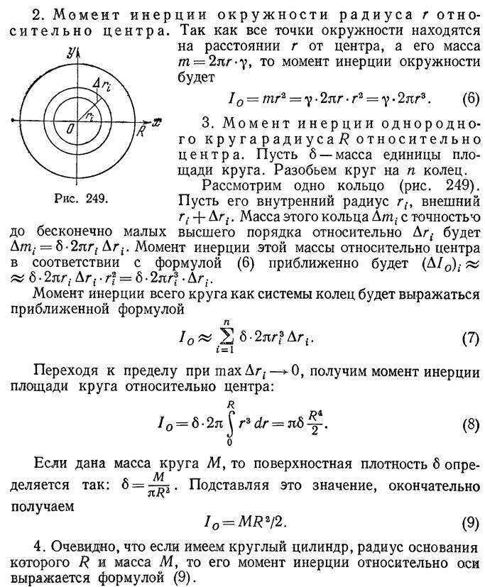 1.7. Вычисление момента инерции линии круга и цилиндра с помощью определённого интеграла