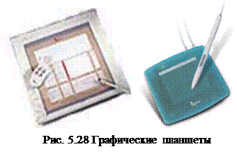 Настраиваемыми параметрами мыши на уровне пользователя являются чувствительность (характеризует величину перемещения курсора мышки по экрану при заданном перемещении мышки), функции левой и правой клавиш, а также чувствительность к двойному нажатию кнопок (определяет максимальный промежуток времени, на протяжении которого два отдельных клика клавиши рассматриваются как один двойной клик). Трекбол - принцип работы аналогичен мыши, однако может устанавливаться и стационарно (рис. 5.26). Шарик трекбола, как правило, встраивается в клавиатуру и приводится в движение ладонью руки. Трекбол обычно используют в портативных компьютерах- ноутбуках, поскольку он не нуждается в гладкой рабочей поверхности.