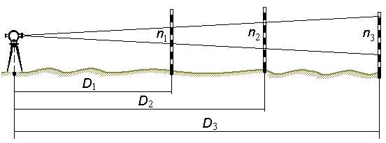 Коэффициент дальномера K определяют путем измерения дальномером отложенных на местности расстояний в 50, 100 и 200 м (рис. 58)