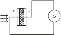 3. 2. 5. Пироэлектрические детекторы. Пироэлектрики – кристаллические диэлектрики, на поверхности которых при изменении температуры возникают электрические заряды. К этим материалам, в первую очередь, относятся сегнетоэлектрики, у которых в отсутствие внешнего электрического поля возникает самопроизвольная (спонтанная) ориентация дипольных моментов частиц (молекул), входящих в состав кристаллической решётки. В результате этого сегнетоэлектрики состоят из совокупности микрокристаллических областей (доменов), поляризованных в различных направлениях. Своё название сегнетоэлектрики получили по кристаллическому веществу- сегнетовой соли NaKC4H4O6 . 4H2O, в которой впервые были обнаружены такие свойства. Сегнетоэлектриками являются титанат бария BaTiO3, дигидрофосфат калия KH2PO4 и др. Спонтанная поляризация Рs может существовать только при достаточно низкой симметрии кристалла. Изменение Ps с температурой связано, как DPs = gDT, где g - пироэлектрический коэффициент. Относительная диэлектрическая проницаемость в сегнетоэлектриках резко возрастает при температурах Т < Тс, где Тс – температура Кюри. При Т > Тс характерное свойство сегнетоэлектриков исчезает, тепловое движение нарушает спонтанную ориентацию дипольных моментов внутри доменов. Вблизи точки Кюри наблюдается резкое возрастание теплоёмкости. При облучении, т.е. нагревании, сегнетоэлектрика на его поверхности появляются заряды, происходит поляризация доменов. Образуется конденсаторная система, которая не требует источника питания. Напряжение, возникающее на электродах при облучении кристаллической пластины, является мерой падающего на приёмник потока излучения. Эти приёмники излучения не требуют охлаждения, обладают высокой чувствительностью в широкой области спектра; однако они высокоомны. Перспективным материалом для изготовления пироэлектрических приёмников излучения является пироэлектрическая керамика, изготовленная на основе ферроэлектрика, в которой особенно заметно изменение дипольного момента атомов. Эти материалы обладают как высокой диэлектрической проницаемостью, так и высокой пироэлектрической постоянной. Повышенная чувствительность приёмника обусловлена возникновением в его объёме при определённой температуре спонтанной поляризации, что обеспечивается пропусканием через ферромагнетик электрического тока. В литературе эти приёмники также называются «ферроэлектрические болометры» или «диэлектрические болометры». Примером пироэлектрической керамики являются: титанат бария-стронция Ba1-xSrxTiO3, ниобат свинца-цинка Pb(Zn1/3Nb2/3)O3, танталат свинца-скандия Pb(Sc1/2Ta1/2)O3 и др. Параметры пироэлектрического приемника излучения: S =(400 – 1000) В/Вт, D* = 7×109 cм×Гц1/2×Вт-1, R» 100 МОм, А = (1 – 20) мм2, t = (1 – 20) мкс, l = (0.3 – 300) мкм. Шум: радиационный, тепловой. Эквивалентная схема включения пироэлектрического приемника представлена на рис. 15.