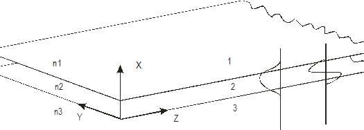 Рис. 37. Структура трёхслойного планарного волновода.