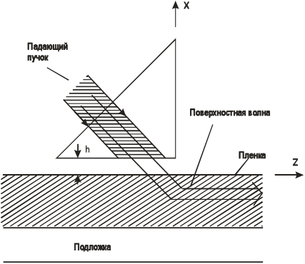 Рис. 39. Поперечный метод преобразования светового пучка в поверхностную волну.