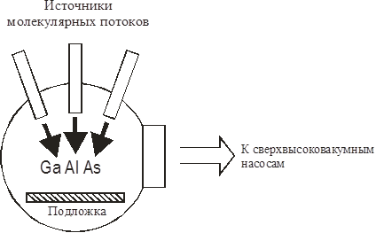 Рис. 43. Схематическое изображение сверхвысоковакуумной МЭЛ-камеры для выращивания AlGaAs.