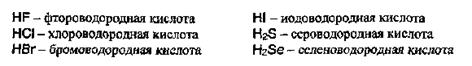 Названия бескислородных кислот производятся от названия неметалла с прибавлением окончания -водородная: