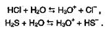 Напротив, для водородных соединений элементов VI и VII групп связь Э-Н будет не менее полярна, чем в молекулах воды, и они смогут диссоциировать по этой связи, причем образующийся ион водорода обратимо переходит на электронную пару воды с образованием иона гидроксония: