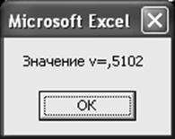 x = Val(InputBox(«Введите x»)) n = Val(InputBox(«Введите n»)) y = Exp(-2 * x) + 1 z = Log(x) / (x + 1) If x < z ^ 2 Then w = Sqr(x * y) Else w = n * x + 2 Msgbox (“w=” & w) В этой программе можно вывести результат в ячейку на рабочем листе Excel. Для этого вместо MsgBox следует записать Worksheets(“Лист1”).Range(“a1”)=w Значение w будет выведено в ячейку А1 на рабочем листе с именем Лист1. Пример 5. Вычислить значение функции n: