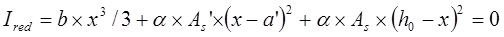 (слайд19) Высоту сжатой зоны сечения х находят из условия, что статический момент приведенного сечения относительно нейтральной оси равен нулю: