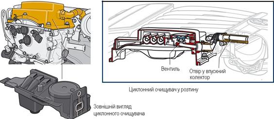 Рис. 25. Циклонний очищувач картерних газів двигуна V6 VW