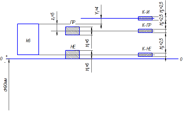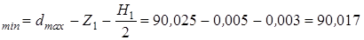 Исполнительным называют предельный размер калибра, по которому изготовляют новый калибр. Исполнительным размером скобы служит её наименьший предельный размер с положительным отклонением, для пробки и контркалибра – их наибольший предельный размер с отрицательным отклонением. Таким образом, на чертеже отклонение проставляют в «тело» калибра. Рассмотрим пример расчета исполнительных размеров калибра. Пример. Определить предельные и исполнительные размеры калибров для контроля вала Æ90к6. По ГОСТ 25347 – 82 находим предельные отклонения вала: еs = +25 мкм еi = +3 мкм Наибольший и наименьший предельные размеры вала: d