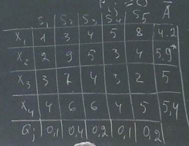 При выборе оптимального решения в условиях известных вероятностей можно пользоваться не только средним выигрышем, но и средним риском (минимум среднего значения риска)