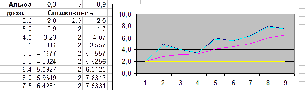 Рисунок 1‑11 Экспоненциальное сглаживание