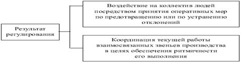 Регулирование – управленческая деятельность, направленная на ликвидацию отклонений от заданного режима функционирования и приведение объекта управления в требуемое состояние. Содержание регулирования как функции менеджмента состоит в перераспределении материально-технических и финансовых ресурсов, оперативном управлении ходом производственного процесса (рис. 3.4).