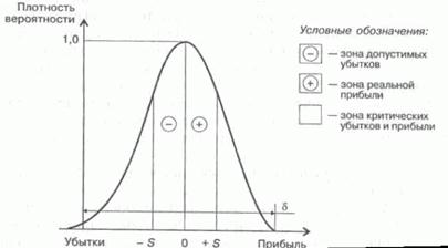 Рис. 15.4. Кривая распределения прибыли и убытков в зависимости от уровня риска Вероятность (частоту) получения прибыли или несения потерь можно определить по формуле