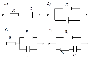 ЕЛЕКТРОМАГНІТНІ КОЛИВАННЯ Електромагнітні коливання – це процеси, в яких такі величини, як заряд, струм, напруженості електричного та магнітного полів тощо, змінюються періодично. Електромагнітні коливання мають дуже широкий спектр практичного використання: майже всі області електротехніки, оптика, радіотехніка. Окремим випадком є електричні коливання. Як показує експеримент, для біологічних тканин характерні великі значення кута зсуву фаз між силою струму і напругою, причому сила струму випереджає за фазою напругу. Це свідчить, що частка ємнісного опору в біологічних об’єктах значна. Наведемо деякі значення кута зсуву фаз j при частоті 1 кГц для різних біооб’єктів: нерв жаби.................. – 64° м’яз кролика.............. – 65° шкіра жаби................ – 55° шкіра людини........... – 55° ламінарія.................... – 78° Як правило, індуктивністю біологічних об’єктів нехтують (при частотах n < 1010 Гц) і вважають, що їхній імпеданс дорівнює геометричній сумі активного R і ємнісного XС опорів. Для характеристики пропускання струму живими клітинами використовують еквівалентні схеми, тобто такі комбінації С і R, які можуть моделювати електричні параметри біологічних тканин. Розглянемо найпростіші з них.