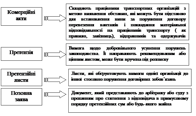 Товар, що надходить або безпосередньо від постачальника, або від транспортної організації приймають за кількістю і якістю, в результаті чого можуть бути виявлені нестача, пересортиця, неналежна якість товарів або ж їх некомплектність чи відсутність супровідних документів постачальника тощо. При цьому, при виявленні порушень та розбіжностей при розрахунках з дебіторами застосовують документи представлені на рисунку 7.5.