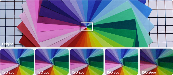 Увеличив чувствительность - мы как бы сказали электронному блоку фотоаппарата, что надо усилить сигнал полученный с каждого пикселя. К сожалению, уровень развития электроники на сегодняшний день такой, что, усиливая электрический сигнал, мы усиливаем и помехи - любые посторонние сигналы не исходящие от объекта съёмки. Такие помехи называются электронным шумом, а на фотографии они заметны в виде серых и белых точек. Чем меньше света может различить каждый пиксель матрицы, тем меньше нам приходится усиливать сигнал, тем меньше на снимке будет шумов. Чем крупнее (в разумных пределах) пиксель, тем больше его площадь, тем больше света он способен уловить. Разные фотоаппараты при увеличении чувствительности матрицы шумят по-разному. Это зависит, прежде всего, от размера пикселей, физического размера матрицы, количества пикселей на матрице, а так же от алгоритма работы электронного фильтра-шумоподавителя. Развивая тему физического размера матрицы можно сказать, что шумность кадра и величину ISO влияет так называемый кроп-фактор. Кроп – пропорция между диагональю матрицы цифровой камеры и диагональю плёнки 24х36 мм. На сегодняшний день у полупрофессиональных зеркальных камер и любительских зеркалок кроп=1.6-1.7. У полноформатных камер кроп равен единице, что означает идентичность размера матрицы и кадра плёнки 24х36 мм. Чем больше размер матрицы тем меньше шум на одинаковых значениях ISO с более младшими собратьями. Размер матрицы является определяющей характеристикой для диапазона ISO, в котором можно снимать, не страдая от проявления шума. Одна из причин этого - то, что пиксели на больших матрицах имеют больший размер и, соответственно, воспринимают больше света. Например, если вы возьмете две четырехмегапиксельные матрицы, одна из которых по размеру в два раза больше второй, то она будет шуметь меньше. Поскольку модели фотоаппаратов, рассчитанные на основную массу покупателей, имеют маленькие матрицы, то шум - это проблема.