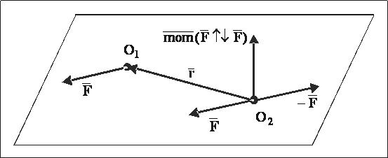 Доказательство: Сила приложена в точке О1. Добавив уравновешенную систему двух сил, приложенных в произвольной точке О2, равных по модулю и параллельных силе , получим: