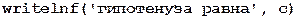 Пример 3.2. Заданы длины двух катетов в прямоугольном треугольнике. Вычислить длину гипотенузы, площадь треугольника, величины его углов.