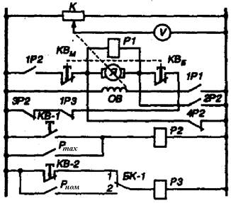 функциональной схеме нагреватель 1 с температурой Т воздействует на рулонный материал 2, нагревая его за время t до температуры Т1. Под действием этой температуры датчики 3 вырабатывают электрический сигнал U(T1), поступающий в блок управления 5. Здесь сигнал преобразуется в управляющее напряжение Uу(T1) для питания электропривода 6, который приводит в движение со скоростью v = f(T1) приклеивающую или сварочную машины. В зависимости от используемого материала и условий работы начальная установка скорости осуществляется задающим напряжением U3 от задатчика 4. Датчик 3 выполнен по схеме равновесного моста постоянного тока. Чувствительный элемент (терморезистор), изменяющий свое сопротивление в зависимости от изменения температуры, подключен к одному плечу этого моста и располагается в процессе работы на расстоянии 4...6 мм над поверхностью разогреваемого материала. Датчиком 3 определяется температура нагрева поверхностного слоя рубероида и выдается электрический сигнал соответствующего уровня в блок управления 5. Этот блок устанавливает такую частоту вращения вала электродвигателя привода 4 машины, при которой за счет изменения времени пребывания материала в зоне нагрева обеспечивается необходимая температура его разогрева в диапазоне, заданном блоком регулирования 6.