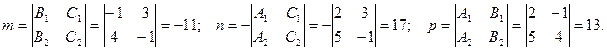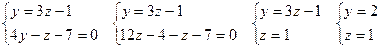 Решение. Для нахождения произвольной точки прямой, являющейся линией пересечения указанных выше плоскостей, примем
