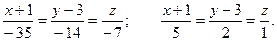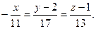 Пример 6.1. Найти каноническое уравнение, если прямая задана в виде: