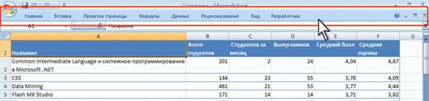 3. Лента будет скрыта, названия вкладок останутся (рис. 1.3).