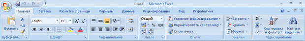 Рис. 1.7. Отображение ленты вкладки Главная при ширине окна 600 точек При существенном уменьшении ширины окна (менее 300 точек) лента и имена вкладок перестают отображаться.