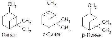 α-Пинен и β-пинен - одни из наиболее распространенных в природе терпенов; входят в состав скипидаров и эфирных масел. α-Пинен выделяют в основном из скипидара обыкновенной сосны, β-пинен - из скипидара обыкновенной ели. Пинены (скипидар) - растворители лаков и красок, сырье для получения соснового масла, политерпеновых смол, камфоры, терпинеола и душистых в-в. Пинены обладают высокой реакционной способностью, что, в сочетании с доступностью из природных источников, сделало их главным сырьем для промышленного получения других терпеноидов, важных в практическом отношении, но менее доступных по природным источникам. Примеры: