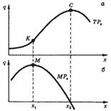 Принятие в экономике предположения о таком характере кривых продукта ТРx и MРxбазируется на так называемом законе падающей производительности (см. лекцию 13).