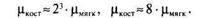 Если принять различие параметра Z для костных и мягких тканей равным 2 (ZKOCT~2ZMSirK), то для соотношения массовых коэффициентов ослабления получим: