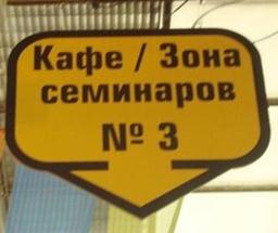 Рис.14Указатель На выставке «Реклама и дизайн», Москва, 2011 3. Скажите, может ли объемный указатель иметь потолочное крепление. Если да, приведите пример.