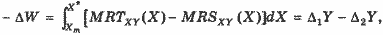 Площадь под MRTXY на участке от Хm до Х* есть не что иное, как прирост общих издержек увеличения производства блага X, или, иначе, количество блага Y, которым общество должно пожертвовать по условиям производства ради получения этого дополнительного количества блага X. Математически это можно представить как: