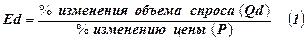 Экономический вид формулы эластичности спроса по цене: (Еd) Величина отрицательная, но учитывается абсолютное значение. Знак (-) ¾ доказывает действие закона спроса. Для математического подсчета может быть использована формула:
