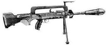 Гранатомет - это преимущественно переносное огнестрельное оружие, предназначенное для поражения бронированных целей, живой силы и военной техники гранатой. Гранатометы подразделяются: по принципу действия - динаморекативные, активные, реактивные и активно-реактиные; по кратности применения - одноразового или многоразового действия; по конструкции - ручные, винтовочные (ружейные), подствольные, станковые (одиночного или автоматического огня) и др.; по назначению - противопехотные или противотанковые; по устройству ствола - гладкоствольные и нарезные, с неразъемными и складвыющимися стволами. Первые образцы ручных гранатометов появились в годы второй мировой войны: "Базука" (60 мм гранатомет) в США образца 1942 г. и "Фаустпатрон" (гранатомет одноразового применения) в германии образца 1943 г. Винтовочные гранатометы являются стрелковым оружием (винтовка, автомат), приспособленным для стрельбы винтовочными гранатами за счет энергии холостого или боевого патрона. Первоначально для отстрела гранаты применялась специальная мортирка, насаженная на ствол оружия. Дальность эффективной стрельбы - 100 м.