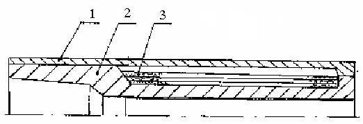 Рис.5. 3 Между наружным слоем проволоки и внутренней поверхностью оболочки оставлен кольцевой зазор и поэтому оболочка в сопротивлении продольному разрыву участие не принимает. Слои проволоки сжимают внутреннюю трубу и сами находятся в постоянном напряжения. Сборочные напряжения позволяют улучшить сопротивляемость внутренней трубы действию пороховых газов, растягивающих трубу. Металл проволоки, применяемый для скрепление стволов, должен быть высокого качества. Эффект снижения напряжений на внутреннем слое аналогичен работе многослойных стволов. Преимущество скрепления стволов проволокой заключается в возможности получения желаемых напряжении в металле без точной механической обработки поверхностей скрепления и без нагрева. Недостаток скрепления стволов проволокой заключается в том, что слои проволоки из-за наличия воздушных зазоров между ними обладают плохой теплопроводностью. Кроме того, у длинного ствола, скрепленного проволокой, получается большой прогиб (от собственного веса), что приводит к быстрому износу ствола.