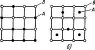 Различают два основных вида твердых раствора: з а м е щ е н и я (рис .7,а) и в н е д р е н и я (рис.7, б).