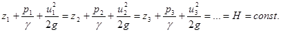 Так как сечения I и II взяты произвольно, то уравнение Бернулли можно записать также в виде