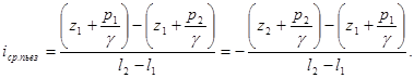 Понятие об уклоне можно ввести и для пьезометрической линии. Средний пьезометрический уклон тогда определится по формуле