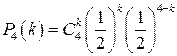 4) Две игральные кости одновременно бросают 2 раза. Написать биномиальный закон распределения дискретной случайной величины X – числа выпадений чётного числа очков на двух игральных костях и вычислить математическое ожидание. Решение: Подбросить две кости два раза – это тоже самое, что подросить четыре игральных кости, поэтому закон распределения дискретной случайной величины X будем искать как при четырех независимых испытаниях: