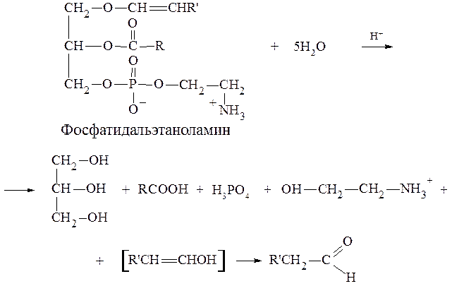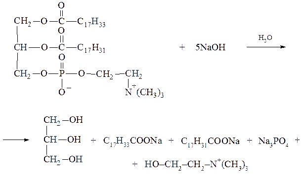 Сложные липиды также подвергаются гидролизу как в кислой, так и в щелочной среде:
