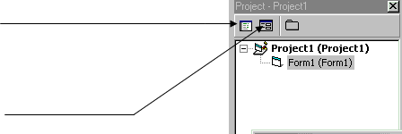 Отладку программ. В начале работы над новым проектом разработчик должен создать экранную форму (ЭФ), являющуюся в дальнейшем графическим представлением оконного интерфейса Windows-приложения, которое соответствует разрабатываемому проекту и для которого создаётся интерфейс – совокупность средств общения пользователя c разработанной программой (программным Модулем – программным кодом, хранящемся в отдельном файле). Значения свойств Экранной формы (их для описания формы используется порядка 50) устанавливаются по умолчанию системой Visual Basic (например, имя Экранной формы (Name) – Form1, имя Проекта – Project1) и могут быть изменены разработчиком. Экранная форма представляет собой контейнер для элементов управления – объектов управления, размещённых на Панели управления Toolbox (рис. 1.7). Сама Экранная Форма является первым из них. Точки сетки на форме помогают размещению элементов (инструментов) управления. При запуске Visual Basic открывающаяся Экранная форма не содержит элементов управления. После щелчка левой кнопкой мыши по пиктограмме нужного элемента (объекта) управления окна Инструментов Toolbox (рис. 1.7) курсор мыши принимает форму крестика. Далее на экранной форме нужно указать положение левого верхнего угла размещаемого элемента, нажав левую и не отпуская ее, установить размер элемента, а затем отпустить кнопку. Щелчок на элементе делает его активным. Размеры формы можно менять (чёрные квадратики). В одном проекте может быть несколько форм. Окно Проводника Проекта (окно Project Explorer)