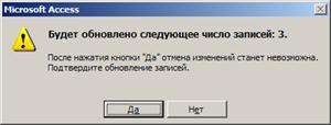 Дав команду выполнить запрос, увидим предупреждение Access (Рис. 37) об обновлении записей.