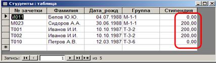 После нажатия кнопки " Да ", Access произведет изменения в таблице " Студенты " (Рис. 38).