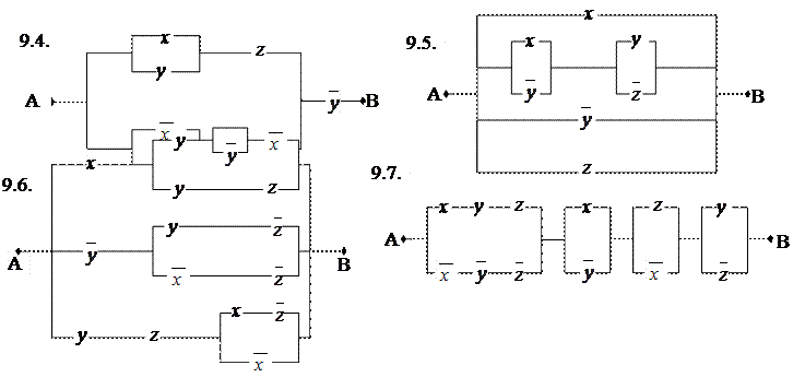 Приложения алгебры логики. 1. Приложения алгебра логики к релейно- контактным схем. 9. Найти функции проводимости следующих схем, если возможно упростить схемы: