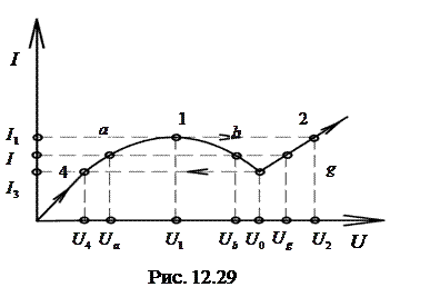 Із ВАХ кола видно, що збільшення струму від При подальшому збільшенні струму напруга зростає до U >U2. При зменшенні струму напруга також буде зменшуватися до U=U0. Подальше зменшення струму приведе до стрибка напруги від U=U0 до U=U4. Коло набуде індуктивного характеру, знову трапиться «прокид» фази. Із ВАХ видно, що одному значенню струму I може відповідати три значення напруги Uа, Uc. Uд. Ділянка 1-3 ВАХ кола характеризує нестійкий режим роботи. Якщо плавно змінювати величину напруги на затискачах кола, то можна отримати усі точки на падаючій ділянці ВАХ.